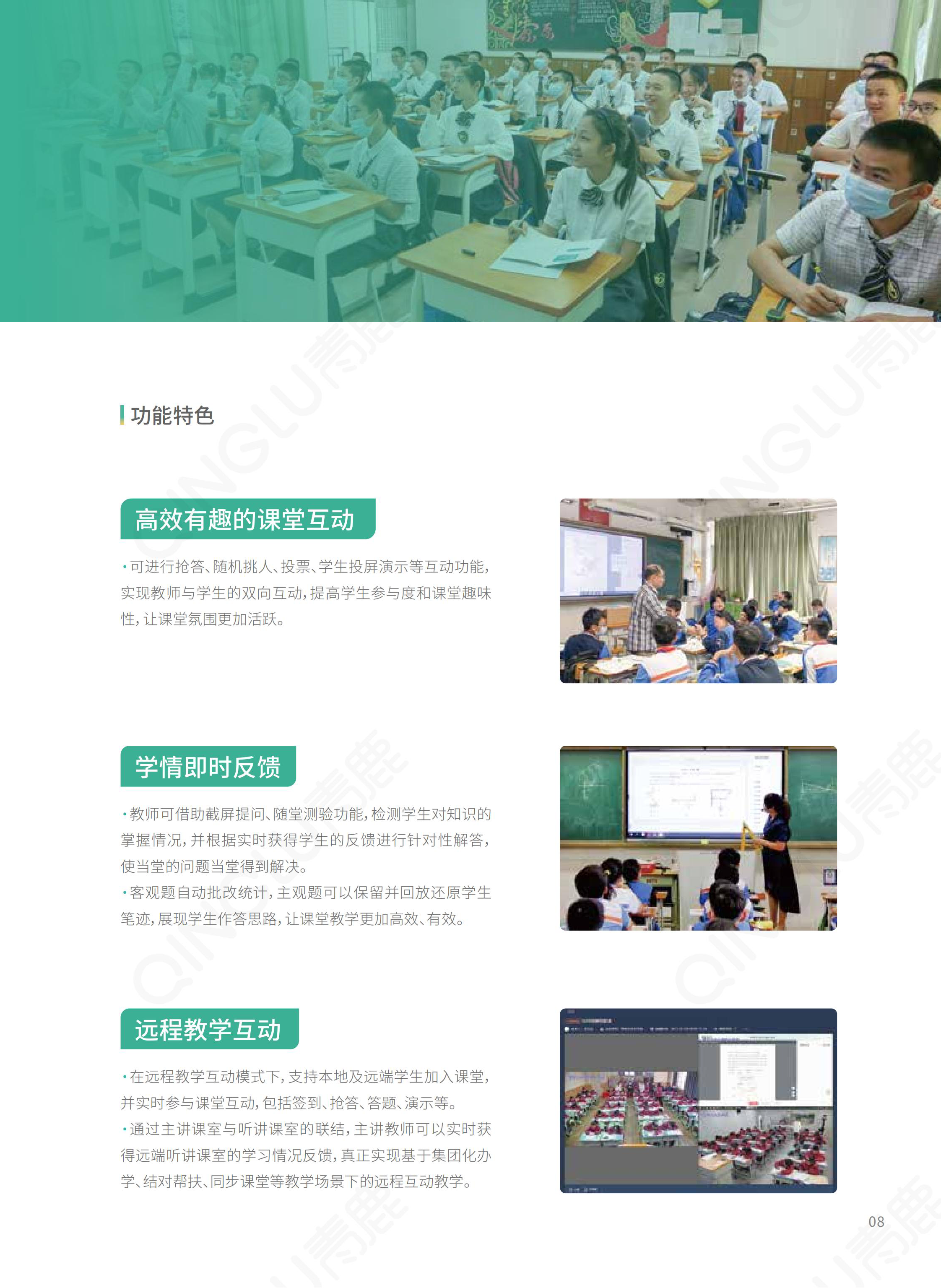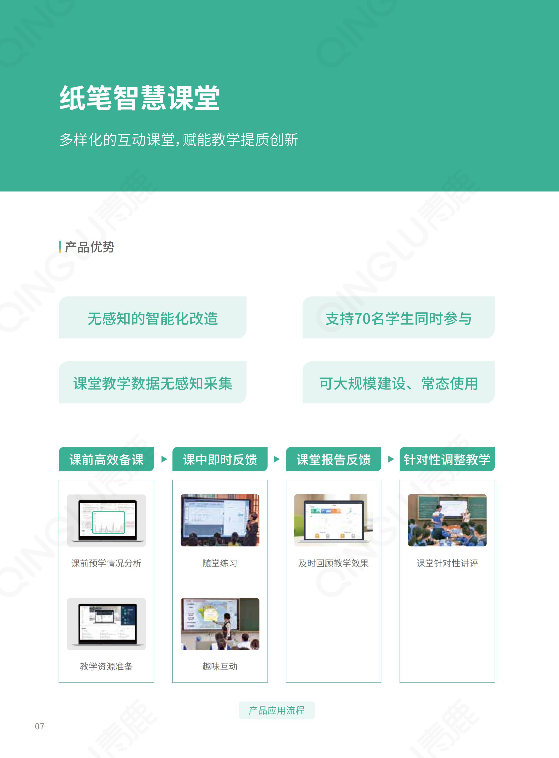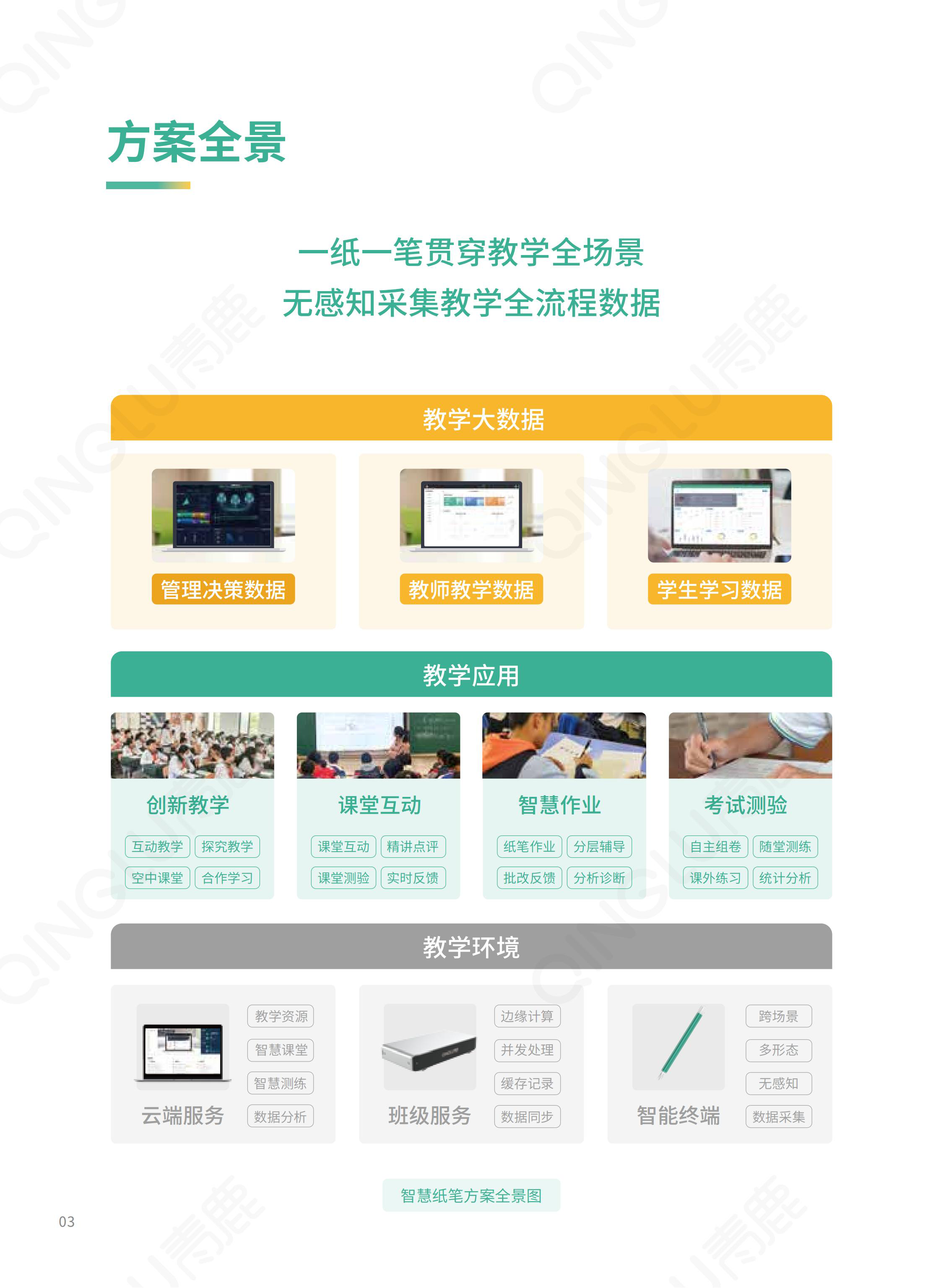 | 智慧教育信息化整體解決方案提供商,我們提供集智慧紙筆課堂、智慧錄播為一體的智慧教學環(huán)境,提供一套可廣泛應用于K12學校信息化整體建設的開放式底層平臺,為學校的教學和管理質(zhì)量提升提供支撐,賦能教育的數(shù)字化轉(zhuǎn)型。 |