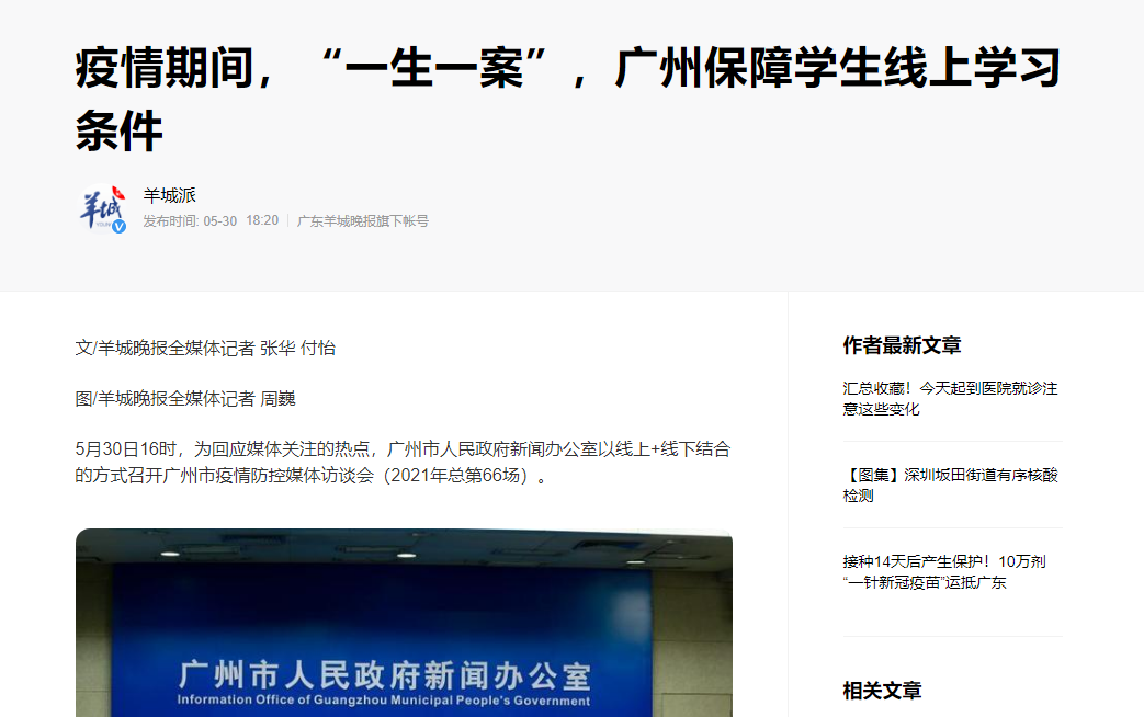 隨著廣州疫情防控升級,為保障教育工作有序開展,廣州市對“停課不停學,停課不停教”進行相關部署,全市涉及疫情的區和學校按照“市級托底、各區統籌、一校一案、一班一案”的原則,積極穩妥地開展線上教育準備。