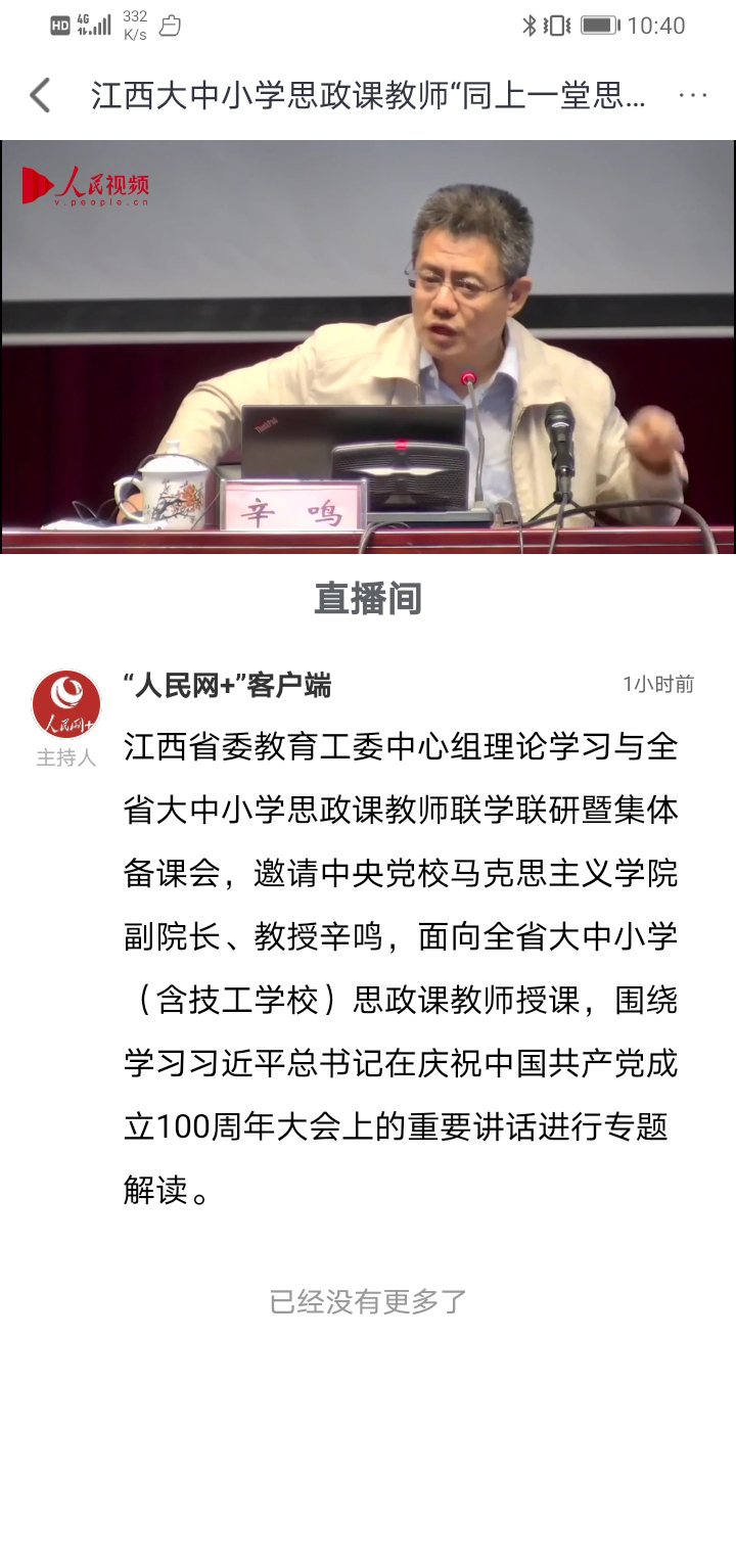 研修班分授課、全省大中小學思政課教師聯學聯研暨集體備課會、討論三個階段舉行。備課會在人民網,贛教云等平臺進行2小時全程直播,線上+線下授課的方式,讓各地各校,全省14萬思政工作者同時在線觀看、集體研討。