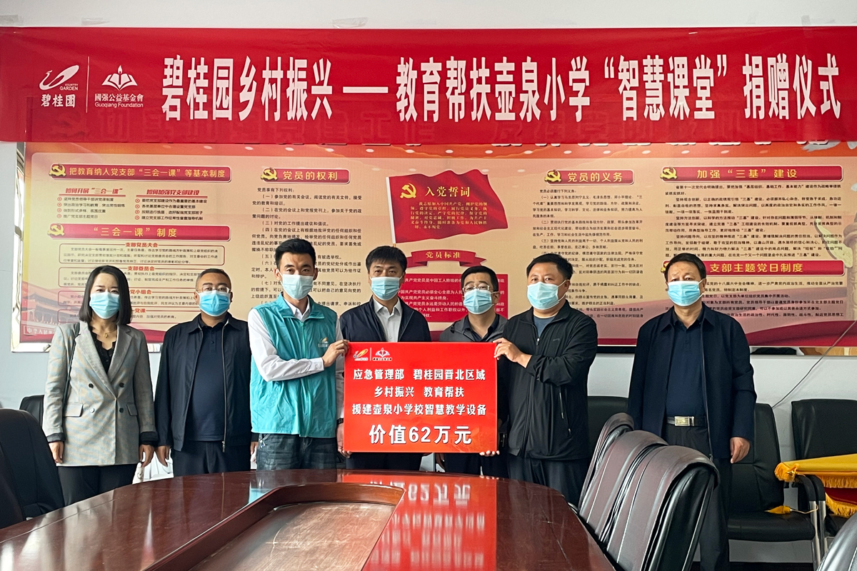 近日,碧桂園鄉村振興-教育幫扶壺泉小學“智慧課堂”捐贈儀式在山西大同廣靈縣舉行。廣靈縣縣委副書記陳宏剛、壺泉小學集團校校長楊世峰,以及縣相關政府部門領導,碧桂園廣靈縣鄉村振興項目部負責人,云蝶科技代表參加了捐贈儀式。
