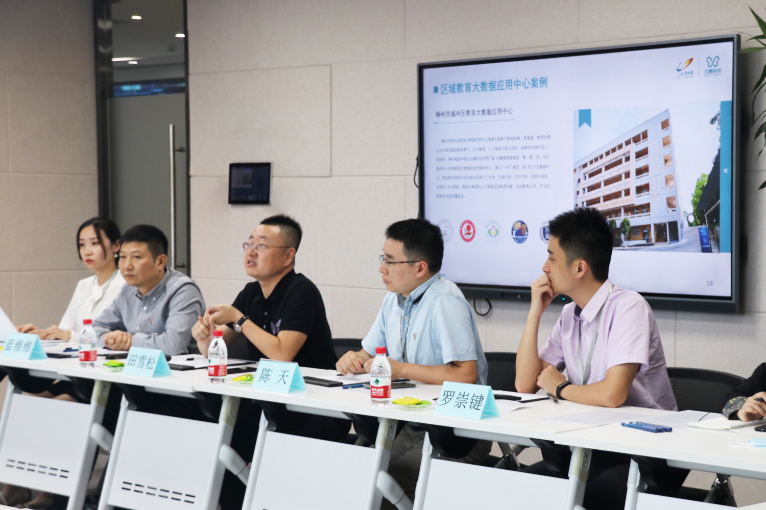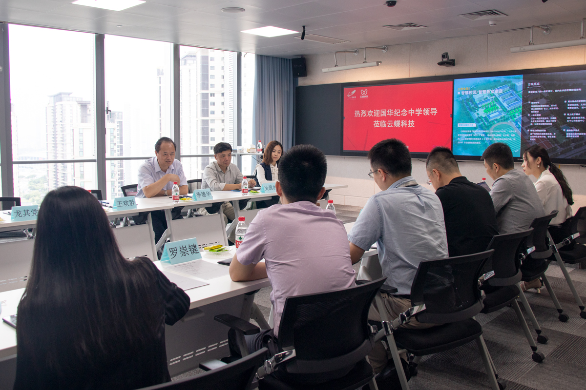 10月13日,國華紀念中學校長季德華一行來到云蝶科技總部,與云蝶科技總裁田雪松、副總裁陳天、副總裁藍維維等共同交流信息技術輔助教育教學的實踐工作。