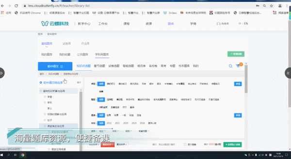 海量題庫(kù)資源是老師組卷、備課的好幫手,在云蝶樂(lè)教云班系統(tǒng)后臺(tái),充分關(guān)聯(lián)學(xué)科網(wǎng)在線資源,組卷方式更加靈活。