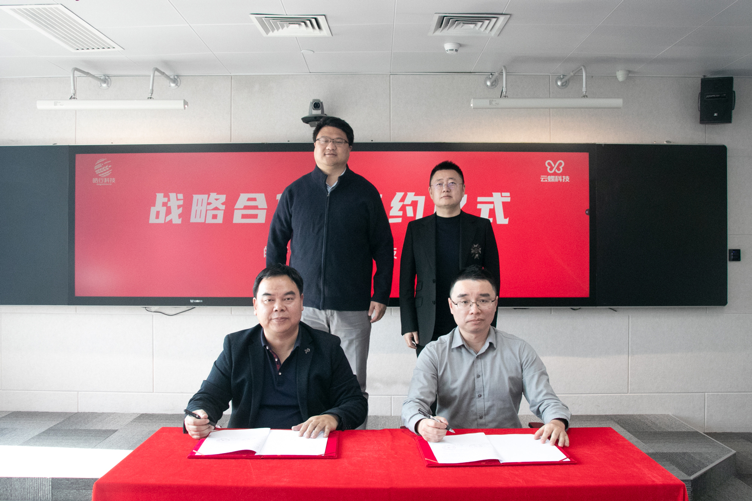 云蝶科技研究院院長陳天與皓行科技戰略市場部副總經理游春成在現場簽署戰略合作協議,云蝶科技總裁田雪松、皓行科技總經理潘凱見證簽約。期待雙方以此為起點,強強聯合,攜手并進,為數字鄉村建設迎來新的突破。