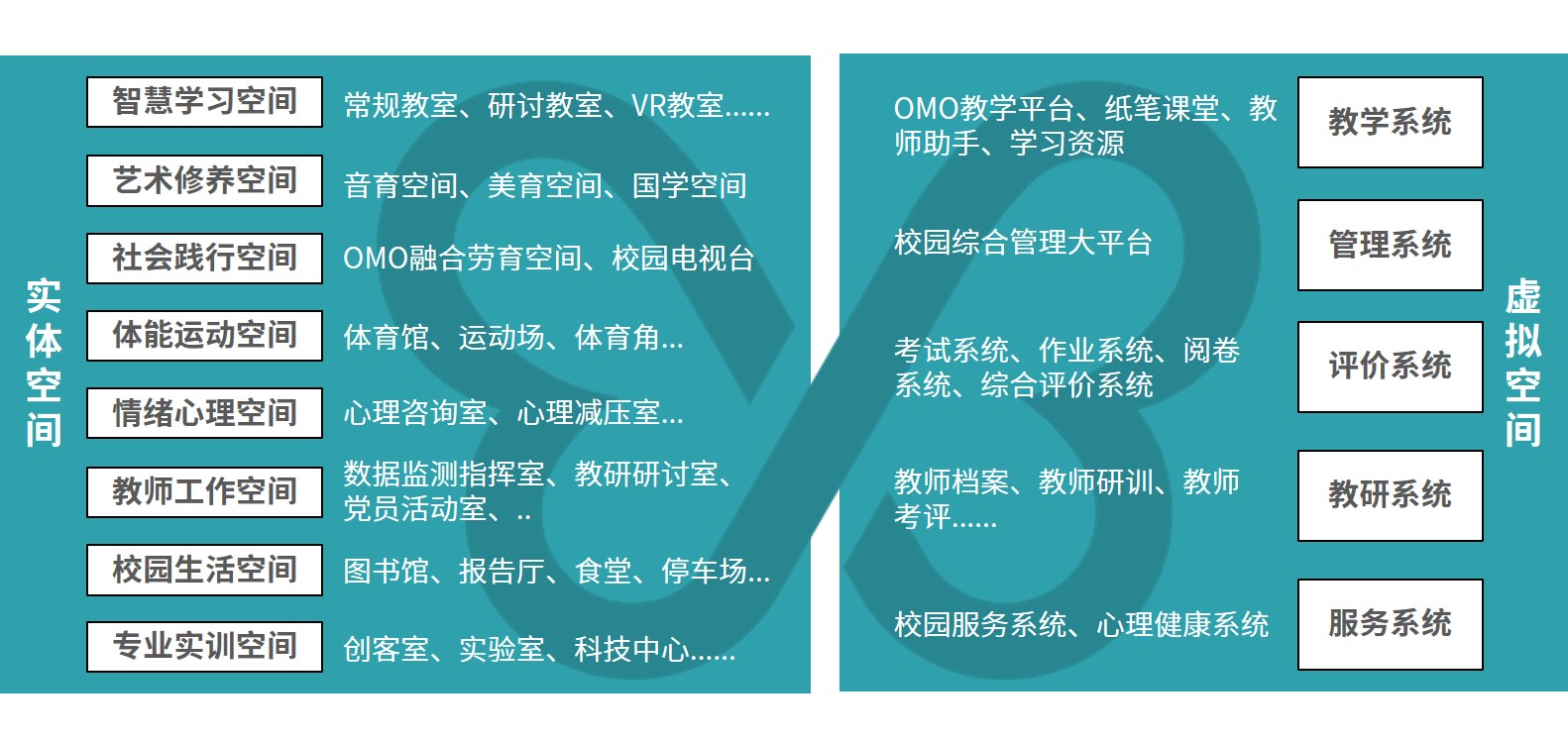在校園空間的建設上,基于OMO思想,同步完善實體空間與虛擬空間建設,以便開展線上線下混合式教學改革,打造校園特色,提升育人水平。