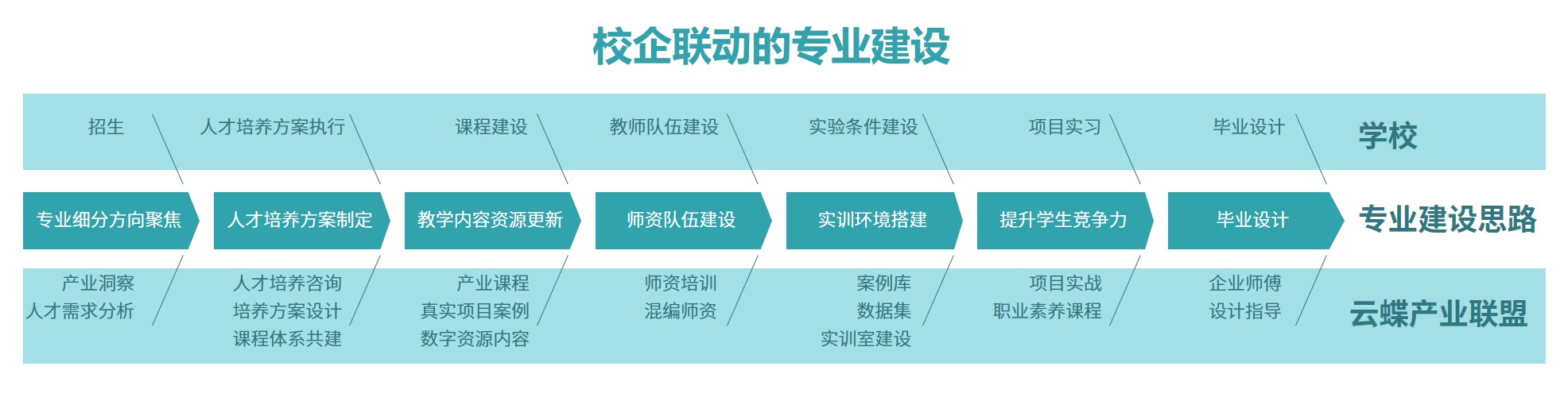 緊密結合學生發展的實訓與創新需求,建設產教融合、校內外融合的校園環境。在人才培養方面,校企共同制定和實施人才培養方案、教學計劃,按照行業人才需求視角設計產業課程,按照企業生產實際設計實訓環境,通過師資專業培訓、企業工程師駐場服務,打造雙師結構教學團隊,從產業資源、師資力量、實習就業等方面全面提升人才培養質量,助力高水平學校建設,促進產業轉型升級。