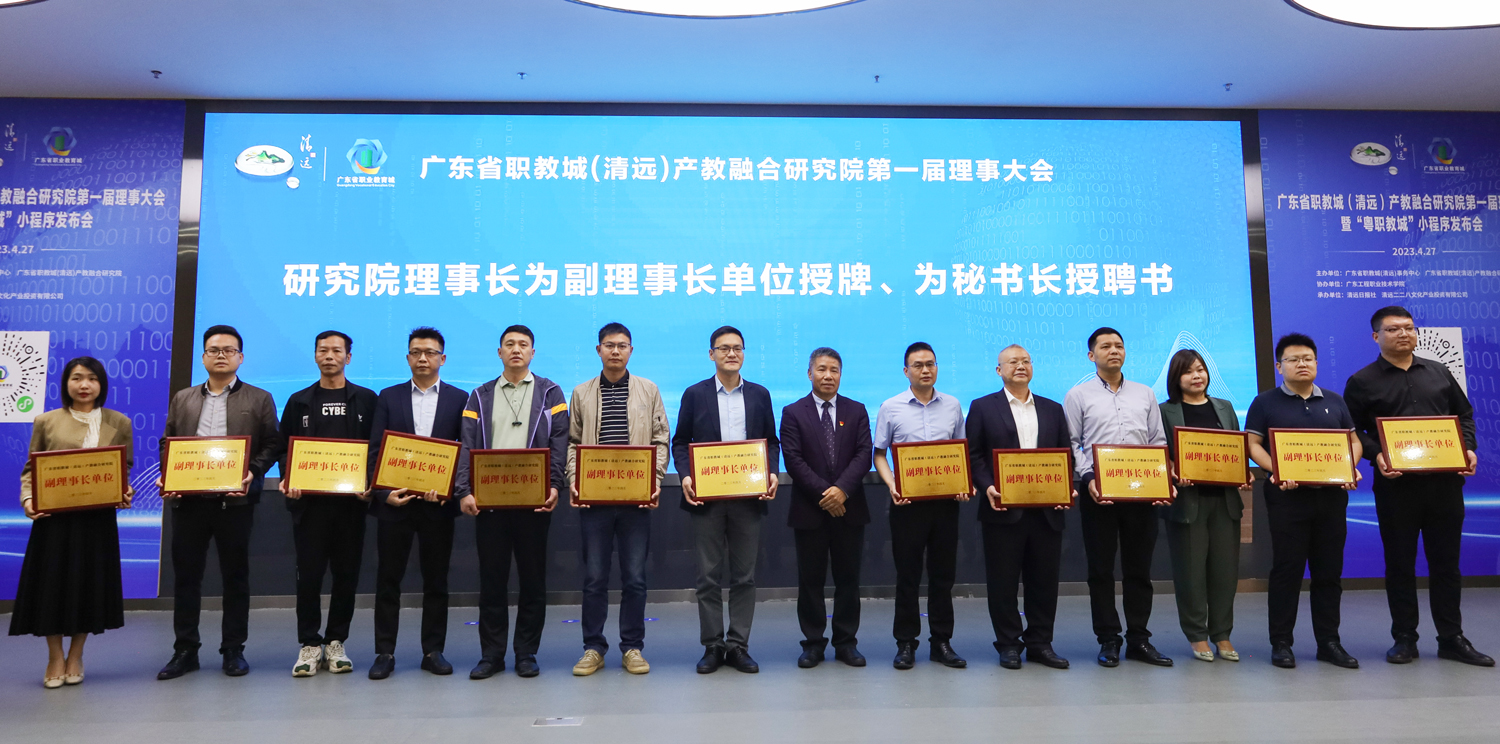 為推動廣東省職教城產教融合高質量發展,4月27日,廣東省職教城(清遠)產教融合研究院第一屆理事大會暨“粵職教城”小程序發布會在廣東工程職業技術學院清遠校區舉行。