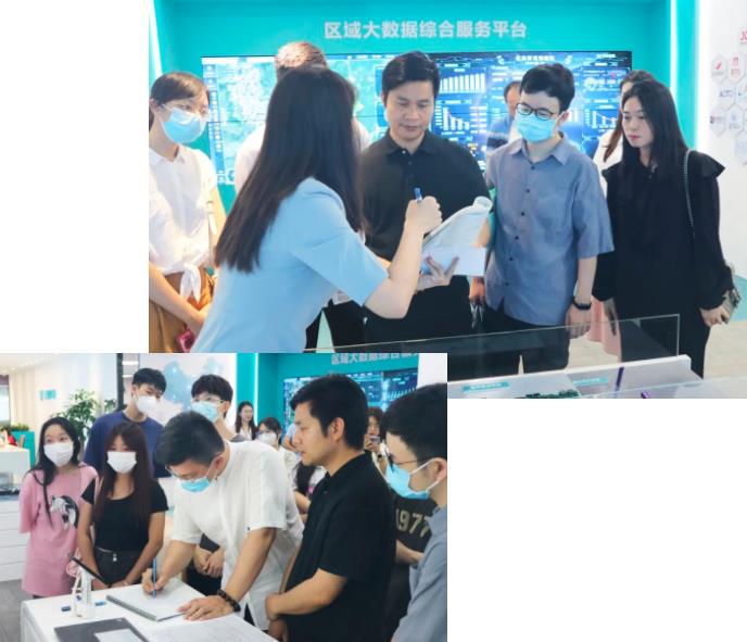 在云蝶科技相關負責人的帶領下,廣東機電職業技術學院的師生們來到云蝶展廳,詳細了解公司的發展概況以及在數字科技領域的研究與建設成果。對于云蝶在教育、農業、建工數字化方面所開展的技術應用深感興趣。