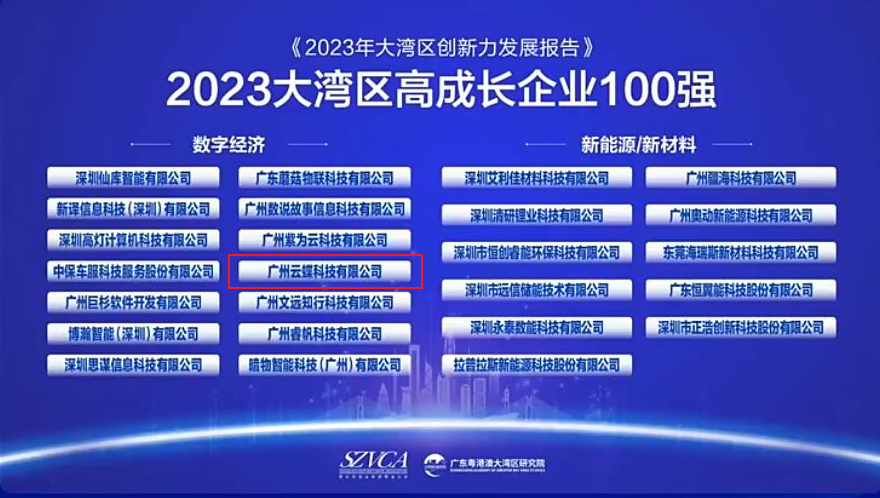 10月27日,由南方財經全媒體集團、社會價值投資聯盟(深圳)、21世紀經濟報道、廣東粵港澳大灣區研究院聯合主辦的“2023大灣區可持續發展系列活動周·大灣區創新經濟論壇”在深圳召開。會上,云蝶科技獲評2023大灣區高成長企業100強,并當選粵港澳大灣區高成長企業俱樂部成員單位。