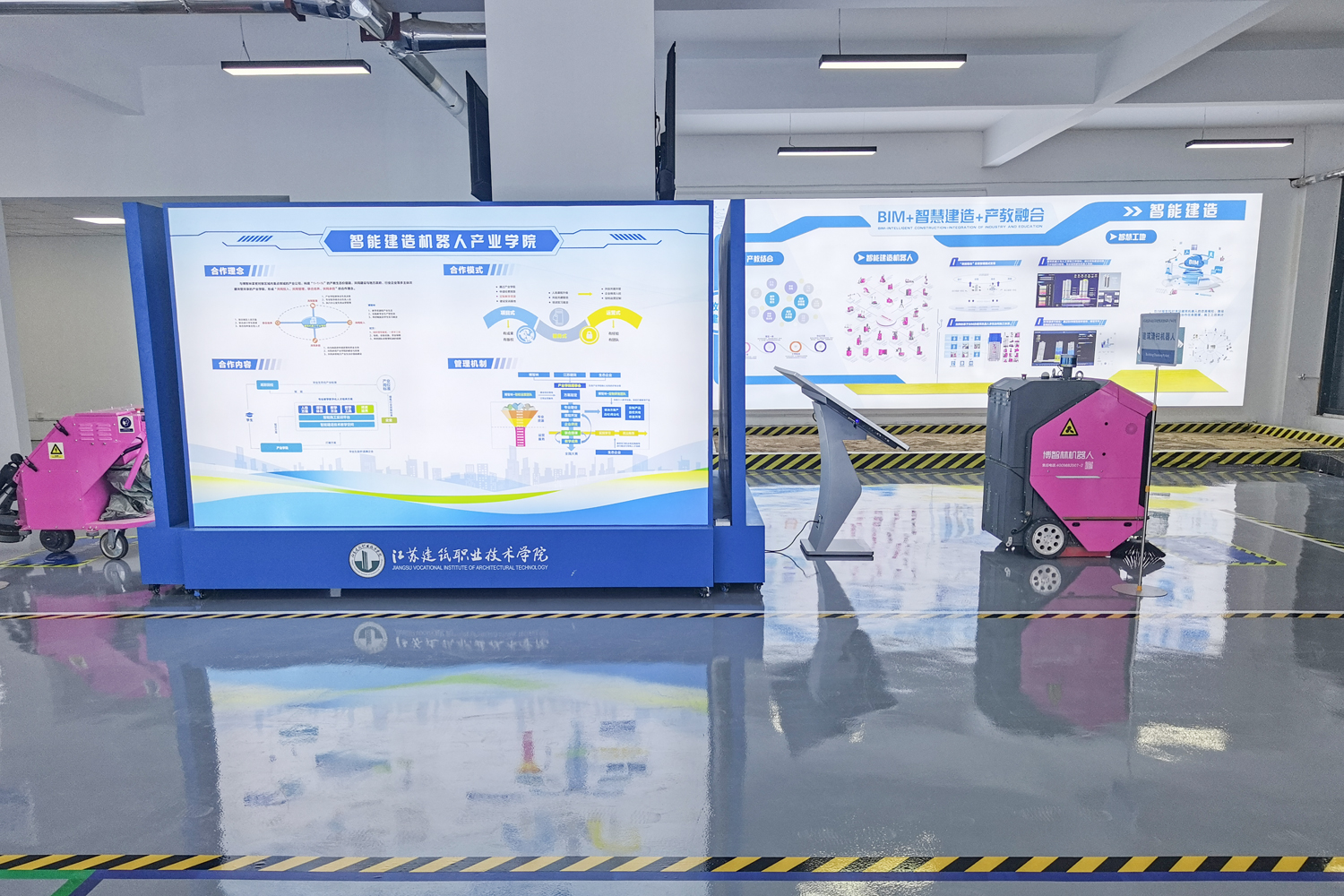 智能建造機器人產業學院位于學校共享實訓基地內,占地面積500多平方米,設有靜態展示、實訓操作等多個作業空間,完善的配套環境為教與學提供了有利的支撐。