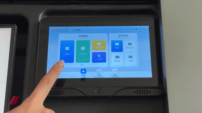 常規(guī)教室的門禁、設備等需要老師在課前逐一開啟,課后逐一關(guān)閉,而智慧教室則大大簡化了這一流程。通過人臉識別或課表排期自動解鎖門禁,與門禁相關(guān)聯(lián)的上課設備隨之自動開啟。此外,教室中控可預設上課/下課模式,用于一鍵啟動或關(guān)閉設備,減少人員負擔,也避免了設備未及時關(guān)閉導致的資源浪費,打造低碳節(jié)能的綠色校園。