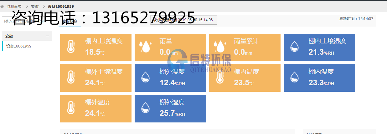 二、監測要素 (1)大氣環境類:環境溫度,環境相對濕度,露點溫度,大氣壓力,風速,風向,降水量,水面蒸發,葉面濕度,日照時數,光照度,太陽總輻射,光合有效輻射,紫外線輻射 (2)土壤參數類:土壤溫度,土壤濕度,土壤熱通量,土壤水勢,土壤導電率等 (3)生態環境類:CO2等