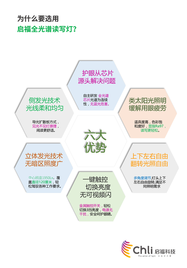 1、自主研發全光譜芯片,光譜為連續性,無藍光危害;