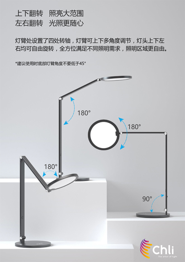 6、燈臂設計四處轉軸,燈頭上下。