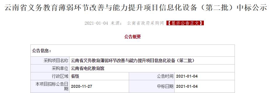 為深入貫徹落實全國教育大會精神,堅持把義務教育均衡發展與脫貧攻堅任務同規劃、同部署、同落實,壓實工作責任,加快推進教育現代化、發展公平有質量的教育,切實將各項舉措落細落實落到位,云南省啟動此次投標活動,促進云南省義務教育發展基本均衡。