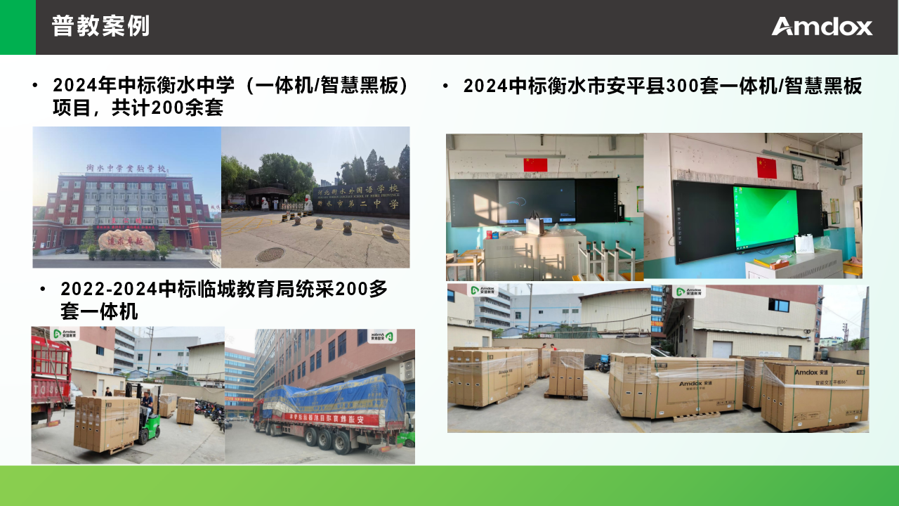 他表示,自河北辦事處成立以來,先后中標多個河北教學信息化項目,如:2024年中標衡水中學(一體機/智慧黑板)項目,共計200余套、2024中標衡水市安平縣300套一體機/智慧黑板、河北邢臺市信都區教育局教學多媒體設備采購項目等。這充分體現了安道產品的行業競爭力,以及河北區域的強大市場潛力。此外,他還介紹了安道當前的服務體系,希望各渠道商和合作伙伴能夠始終相信并堅定選擇安道。