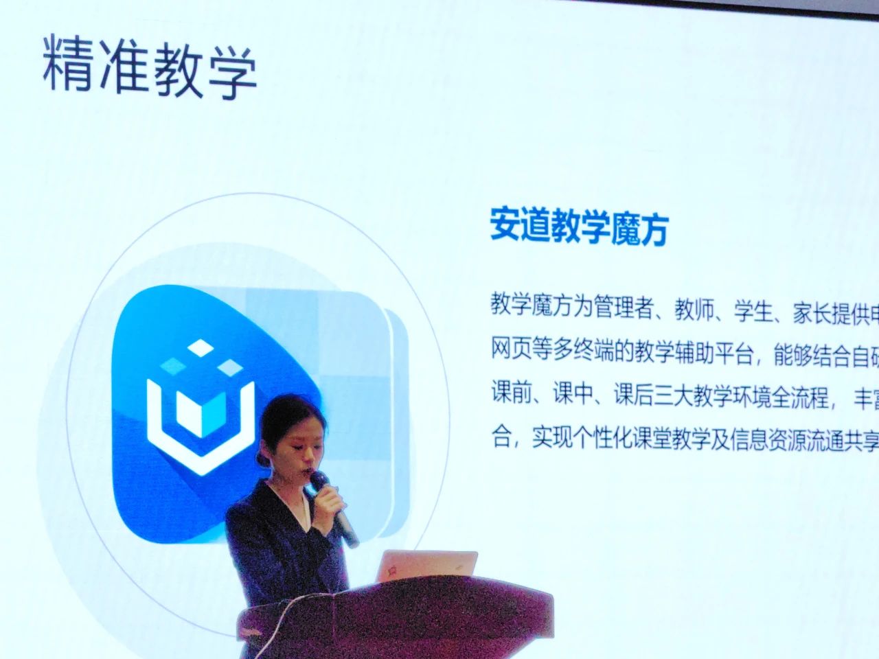 在現場,安道教學一體機上正展示著「安道教學魔方」的操作界面。安道教學魔方是安道教育(Amdox)自主研發的智慧教育軟件,以大數據為核心,通過覆蓋課前、課中、課后全流程的閉環設計,助力教師實現精準化教學與個性化輔導。「安道教學魔方」為管理者、教師、學生、家長多用戶提供電腦端、移動端、小程序、網頁等多終端提供全面的教學輔助平臺。