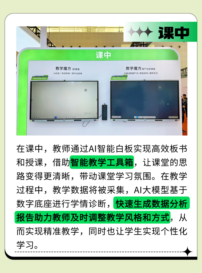 在精準教學區域,最新迭代的智慧教學應用軟件「安道教學魔方」亮相現場。作為多功能教學工具,貫穿「課前」「課中」「課后」全過程,在備授課場景上實現了新突破。