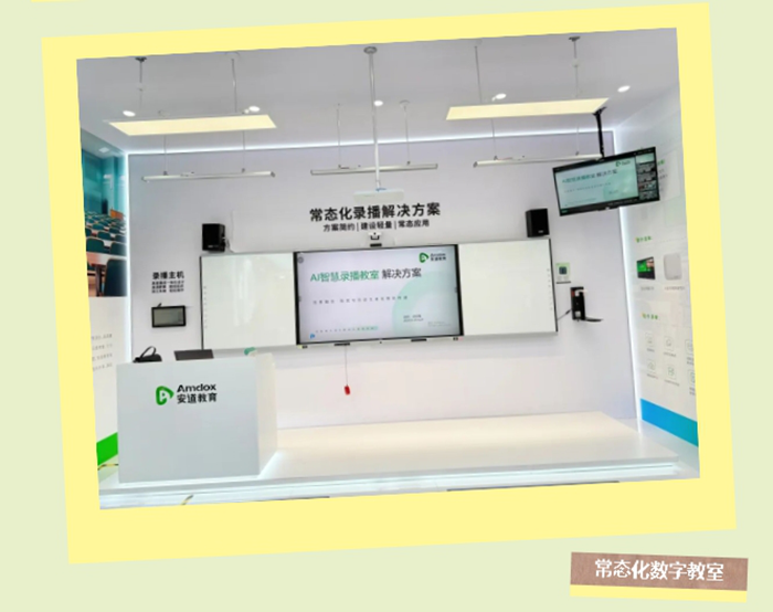 在錄播解決方案展示區,安道全新升級的全場景錄播解決方案被完整展示出來。通過AI技術賦能實現課堂音視頻錄制、直播、畫面追蹤、智能導播等功能,為教師、學校提供更優質的授課環境,打造更高質量的課程視頻資源,為校園數字化更新提速。