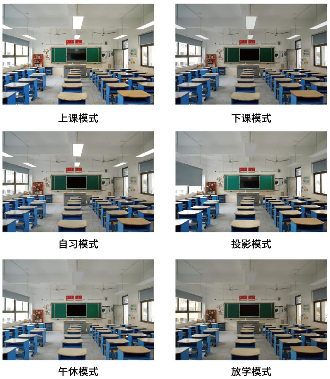 顯然,教室照明改造不應被理解為“新燈換舊燈”,而是光環境整體解決方案。這包括基于真實空間場景和不同人群需求的專業照明設計、光生物理論、智能控制的細微化等各方面。尤其是教室除了基本的上課之外,還會有投影、自習、課間的場景需求,單一的燈光設計是無法滿足學生一天不同活動的用光需要。