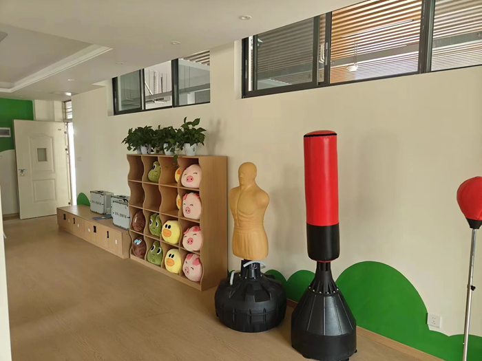 采用柔和的色彩與燈光,劃分為個體咨詢區(qū)、沙盤游戲區(qū)、情緒宣泄區(qū)及團體活動區(qū)。專業(yè)的設(shè)計有效消除了學生的緊張感,讓心理輔導在舒適自然的環(huán)境中悄然進行。