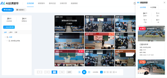 濱州職業(yè)學院引入現(xiàn)代中慶AI巡課與督導評價系統(tǒng),學院對原有巡評課系統(tǒng)進行迭代升級,實現(xiàn)了教學質(zhì)量管理的“數(shù)字化+”賦能。