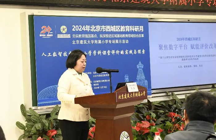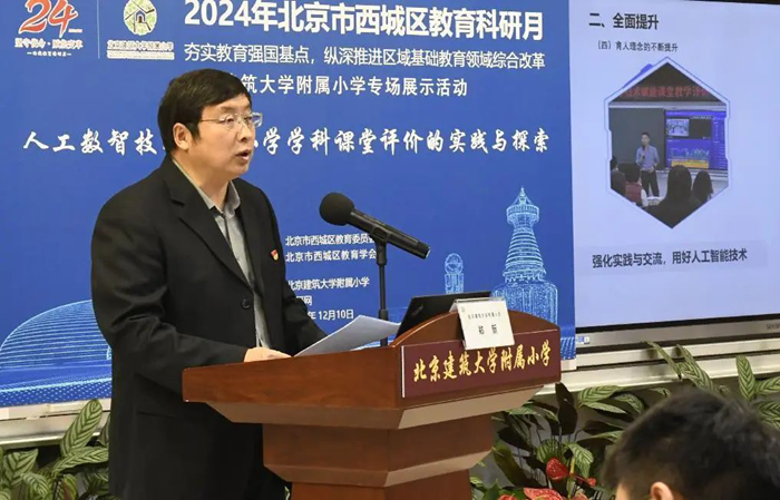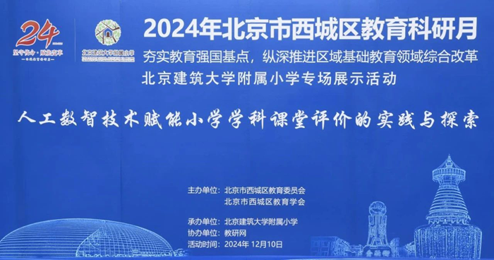 12月10日,北京市西城區(qū)教育科研月迎來(lái)了又一次成果展示——北京建筑大學(xué)附屬小學(xué)專(zhuān)場(chǎng)活動(dòng)。本次活動(dòng)以“人工數(shù)智技術(shù)賦能小學(xué)學(xué)科課堂評(píng)價(jià)的實(shí)踐與探索”為主題,通過(guò)主題報(bào)告、課堂展示和教研匯報(bào),充分展現(xiàn)了建大附小在人工智能時(shí)代,將AI與課堂評(píng)價(jià)、課堂教與學(xué)深度融合的時(shí)代亮色。
