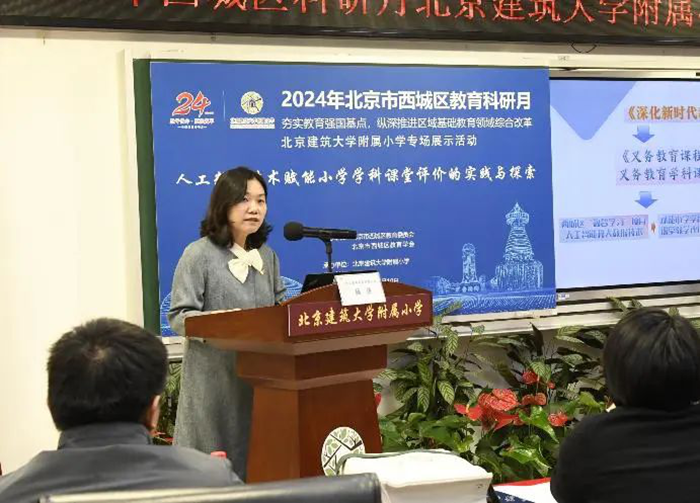 北京建筑大學(xué)附屬小學(xué)科研主任楊蓓作主題報(bào)告——人工數(shù)智技術(shù)賦能小學(xué)學(xué)科課堂評(píng)價(jià)的實(shí)踐與探索