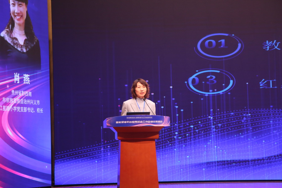 貴州省黔西南布依族苗族自治州興義市紅星路小學黨支部書記、校長肖燕的報告《智研探索,數字領航——興義市紅星路小學CPR—MIC智能精準教研》分享了興義市紅星路小學如何通過“CPR-MIC”模式,利用AI課堂數據分析,推動教師專業成長和教學質量提升。