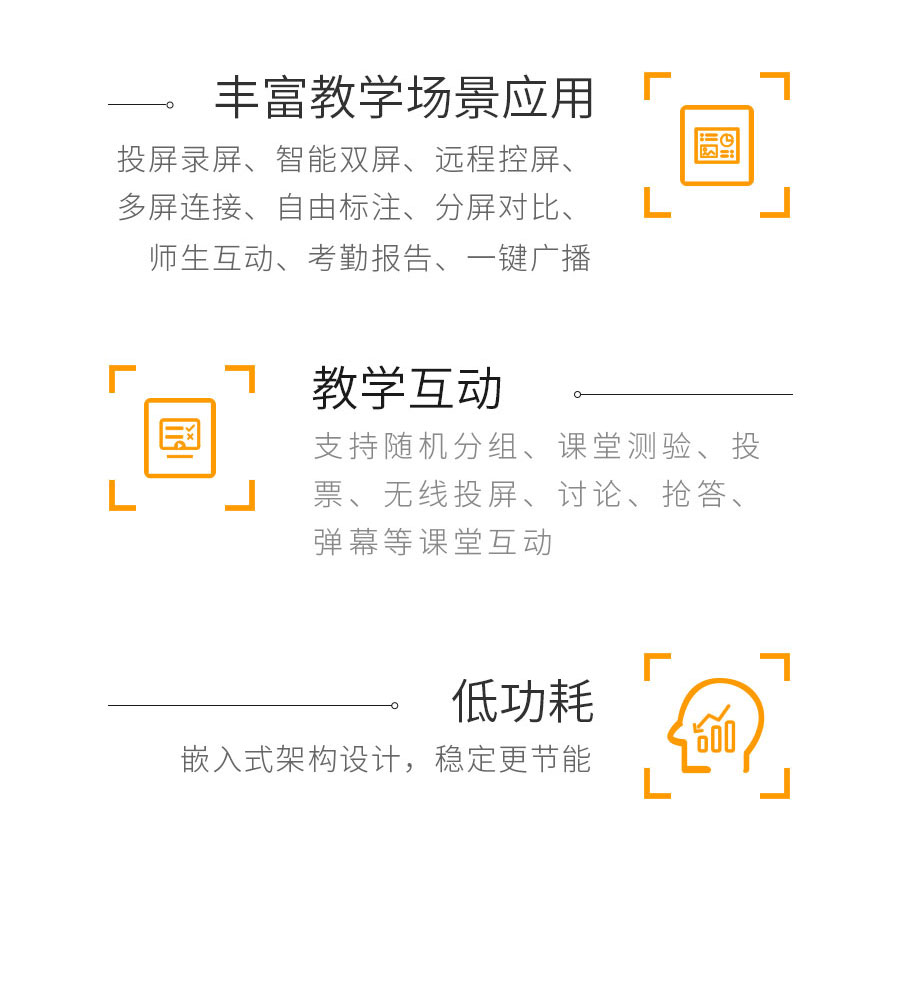 | AI教研應用、錄播系統、智慧教室、“三個課堂”解決方案等 |