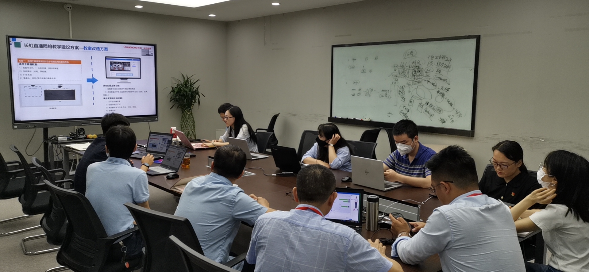 隨后,長虹教育黨支部黨員、解決方案中心副總經理王天宇同志分享了主題為《長虹直播網絡教學規(guī)劃方案-助力疫情下的常態(tài)化網絡教學》,從線上教學存在的問題、如何保證線上教學效果、長虹停課不停學建議方案等方面介紹在高校原有的教室基礎上更高效的改造升級。在后疫情時代直播網絡教學將成為常態(tài),為確保教學質量的持續(xù)提升,長虹直播網絡教學方案還將線上教學情況進行數據化分析,并形成簡報,實現了