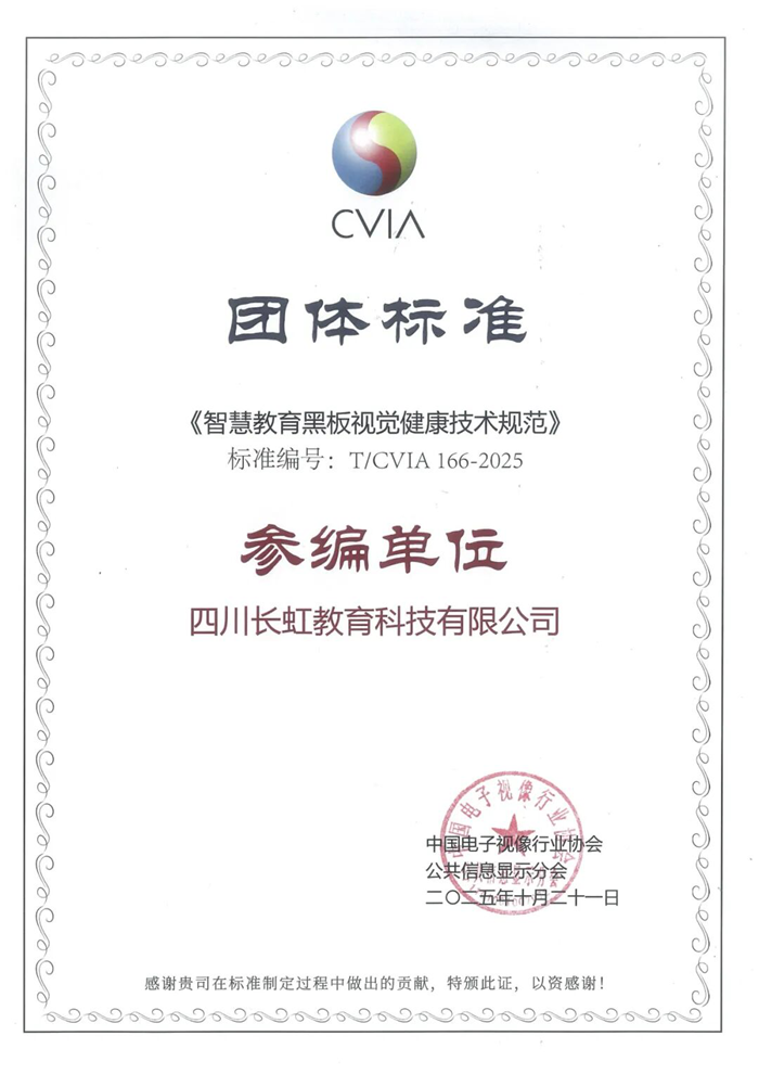 作為標(biāo)準(zhǔn)核心起草單位,長虹教育科技依托十余年教育裝備研發(fā)經(jīng)驗(yàn),在防眩光設(shè)計(jì)、顯示性能優(yōu)化、智慧護(hù)眼等關(guān)鍵環(huán)節(jié)提供實(shí)踐支撐,確保標(biāo)準(zhǔn)內(nèi)容貼合真實(shí)教學(xué)場景。該標(biāo)準(zhǔn)的落地,對(duì)行業(yè)而言,將推動(dòng)智慧教育黑板領(lǐng)域從“拼參數(shù)”向“重健康”轉(zhuǎn)型,為企業(yè)研發(fā)生產(chǎn)設(shè)立“健康標(biāo)桿”;對(duì)學(xué)校而言,解決了采購時(shí)“選品難、判斷難”的痛點(diǎn),提供清晰的視覺健康指標(biāo);最終將成為守護(hù)師生視力的“安全屏障”,為數(shù)字教育高質(zhì)量發(fā)展注入“健康動(dòng)能”。