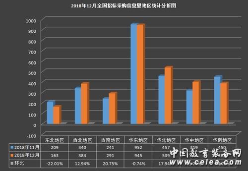 2018年12月教育裝備市場招標(biāo)采購信息量環(huán)比小幅增長