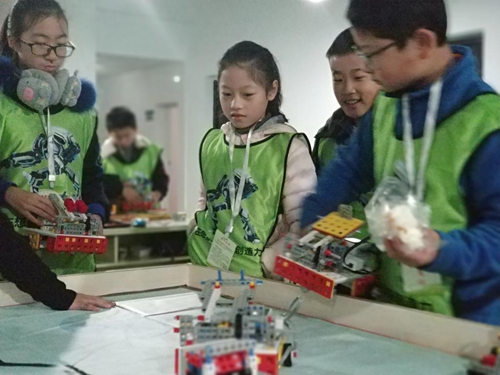 上饒市首屆青少年機器人創客大賽于2018年12月23日在上饒縣七中舉行,共有114支隊伍、近400名選手參加了大賽的角逐。大賽根據難易程度,設置了能力風暴WER普及賽、能力挑戰賽、工程創新賽三個項目。機器人創意比賽圍繞指定主題,要求參賽隊在現場自行拼裝機器人、編制機器人運行程序、調試和操作機器人,完成比賽任務。我校推薦查思羽、張學文、周翰林、吳卿城、胡景宣、葉智鑫等九名同學,由校教育技術處副主任程曉明帶隊參賽并全部獲獎。其中,查思羽、張學文獲得能力風暴工程創新賽小學組一等獎,周翰林、吳卿城、胡景宣、葉智鑫獲得能力風暴普及賽小學組一等獎,銀城二小作為參賽成績突出,獲評大賽組委會“優秀組織獎”。