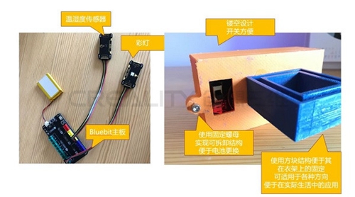 實(shí)時(shí)溫濕度提示器模型由3D打印機(jī)打印而成,只需要在建模的時(shí)候,提前為你要鋪設(shè)的電路板預(yù)留空間,打印出來(lái)就可以直接將電路板卡在里面,每個(gè)電子零件,3D打印機(jī)都為他打印好了置放的空間,有了3D打印機(jī),安裝這個(gè)溫濕度提示器就輕松多了。