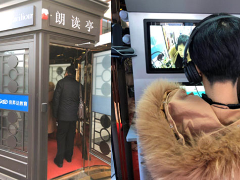 前來參會的嘉賓在試用信昇達校園朗讀亭設備