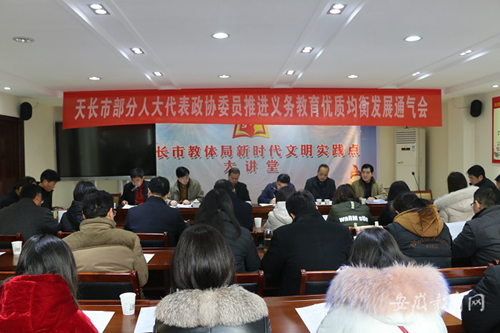 會議學習并解讀了天長市人民政府關于加快推進縣域義務教育優質均衡發展的相關文件精神,同時介紹了天長市申創義務教育優質均衡縣的背景、現狀以及目標。對目前推進教育優質均衡發展中存在的短板以及下一步的設想和舉措,會議作了詳細的說明。與會代表和委員們對申創義務教育優質均衡縣工作進行了深入地互動和交流。