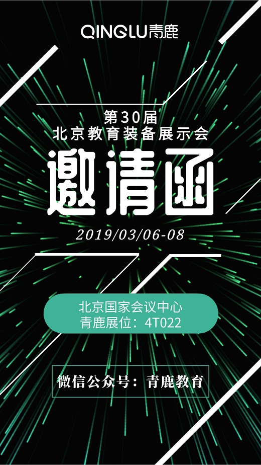 第30屆北京教育裝備展示會,將于2019年3月6日-8日在北京國家會議中心隆重舉辦,廣州青鹿教育科技有限公司將攜超強產品陣容亮相,歡迎領導和來賓蒞臨青鹿展位4T022。