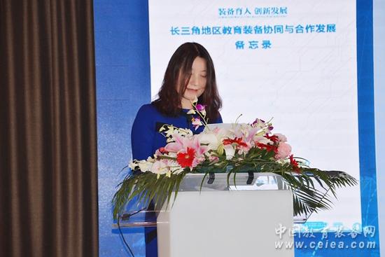 上海市教育委員會教育技術裝備中心副主任黃玉群宣讀長三角地區教育裝備協同與合作發展備忘錄