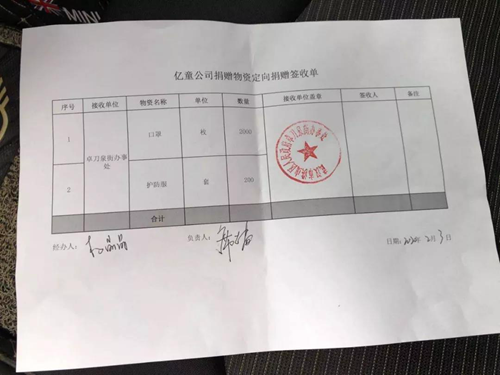 2月1日,億童公司遍布全國各地的經銷單位也發起募捐活動,
