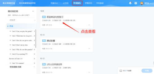 查看作業報告時,各位老師可以留意觀察學生查看資源的用時和時段,從而判斷其是否認真學習單詞卡,并且了解學習習慣,如果在深夜學習的學生,可以提醒他早點完成預習,不要熬夜學習,養成早睡的好習慣,讓老師與同學之間的交流更加溫暖。也可以通過學生提問的方式,發送一些學習建議或鼓勵,讓同學們在家也能感受到老師對他的關注~