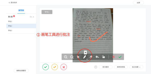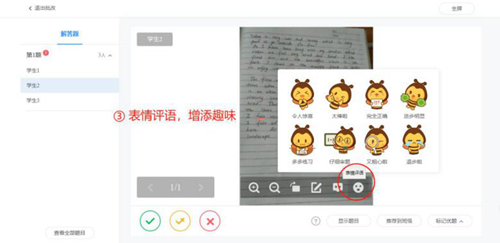 在批改作業時,各位老師可以用畫筆進行批注,就像平時批改作文一樣,新增加的表情評語—小蜜蜂貼紙,讓老師的評價變得更加活潑有趣,增加學生學習自信心。對于優秀的答案,可以推薦到班級,讓同學之間互賞互評,激勵學生向優秀的同學學習!