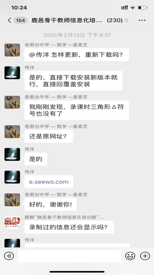 為做好全縣中小學(xué)教師開展線上教學(xué)輔導(dǎo)培訓(xùn)工作,提高線上教育教學(xué)質(zhì)量,經(jīng)鹿邑縣教體局同意,由鹿邑縣電教館聯(lián)合希沃組建學(xué)習(xí)研討群進(jìn)行線上學(xué)習(xí)和錄播遠(yuǎn)程授課培訓(xùn)。