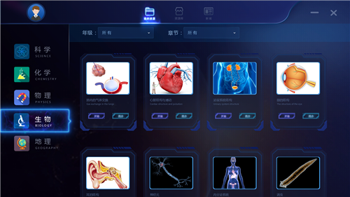 VR仿真教育資源庫,包括虛擬實驗資源、課題探索研究資源、3D模型庫等。