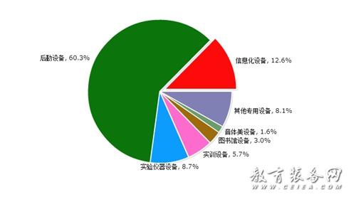 根據5月份教育裝備招標采購信息分類統計圖(見圖1)可以看出:后勤設備信息量為1711條,占全部信息量的60.3%;信息化設備信息量為357條,占全部信息量的12.6%;實驗儀器設備信息量為248條,占全部信息量的8.7%;實訓設備信息量為163條,占全部信息量的5.7%;圖書館設備信息量為85條,占全部信息量的3.0%;音體美設備信息量為44條,占全部信息量的1.6%;其他專用設備信息量為230條,占全部信息量的8.1%。