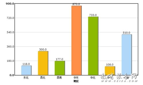 從5月份教育裝備中標信息地區統計圖(見圖8)和占比圖(見圖9)可以看出:華東地區中標信息量1005條,占全部信息量的43%;華北地區中標信息量448條,占全部信息量的19%;華南地區中標信息量362條,占全部信息量的16%;西南地區中標信息量157條,占全部信息量的7%;西北地區中標信息量207條,占全部信息量的9%;東北地區中標信息量108條,占全部信息量的5%;華中地區中標信息量30條,占全部信息量的1%。