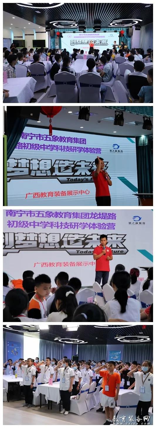 未來的教室是什么樣的?智慧校園有哪些新奇之處?7月23日-25日,南寧市五象教育集團龍堤路初級中學組織七年級500多名新生分5個批次前往廣西教育裝備展示體驗中心開展科技研學之旅。