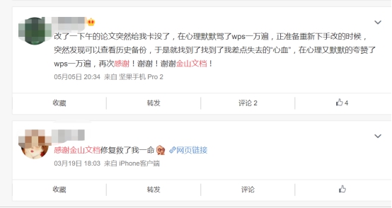 網(wǎng)友稱贊金山文檔自動保存及修復(fù)功能
