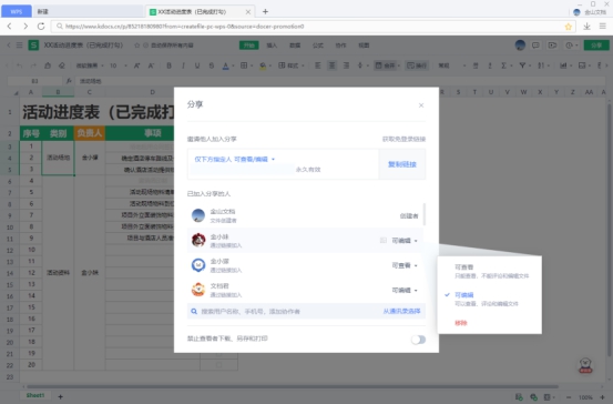 除此之外,該功能一如既往地延續(xù)了金山文檔在“多人編輯”功能的強勁功底。可打破客戶端的本地傳統(tǒng)編輯限制,使用戶在客戶端內(nèi)實現(xiàn)多人同時在線編輯,一條共享鏈接,邀請多人同時編輯一份文檔。