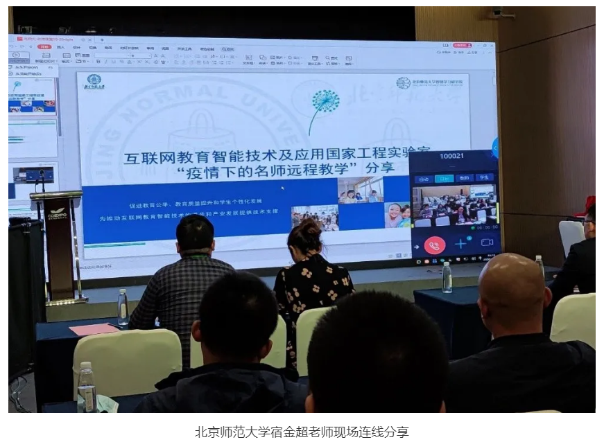 本次發布會以主會場與分會場聯動的形式進行全面分享,重慶主會場由教育事業部研發總監鄭光才對“AI課堂”產品作全面解讀,并利用AI課堂直播功能與北京師范大學、合肥市望湖小學、天立泰科技智慧教室三個分會場進行連線,就疫情下的名師課堂教學案例分享、專遞課堂的應用實踐、名師網絡課堂建設等內容,為“三個課堂”提供建設經驗。