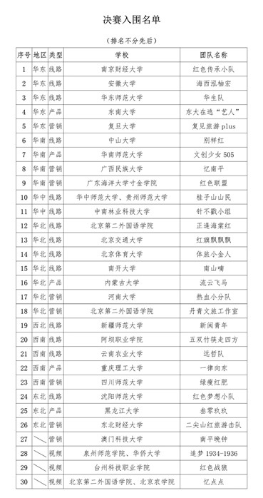 青年創意、青春風采一次次點燃決賽舞臺。經過激烈角逐,大賽共評選出特等獎3組、一等獎7組、二等獎20組,來自北京第二外國語學院、東南大學、泉州師范學院的“正逢海棠紅”團隊、“東大在逃‘藝人’”團隊、“追夢1934-1936”團隊分別獲得路線組、產品營銷組、視頻組特等獎。此外,現場還評選出 “最佳風采獎”、“最佳創意獎”及“優秀指導教師”等若干獎項。